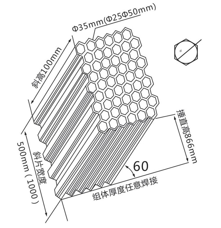 產品名稱 | 六角蜂窩斜管填料 | ||||||||