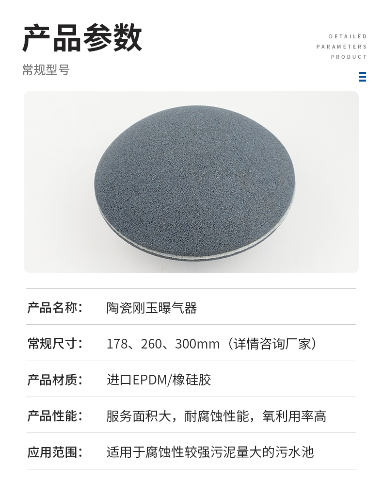 陶瓷剛玉曝氣器是以棕剛玉沙為主要原料,經(jīng)壓制成型、高溫?zé)Y(jié)的一種鐘罩型高效節(jié)能空氣擴(kuò)散裝置,該類型曝氣器硬度更大,化學(xué)性能十分穩(wěn)定,可適用于各種生活污水和工業(yè)廢水生化處理、水產(chǎn)養(yǎng)殖等增氧系統(tǒng)。分全剛玉和半剛玉兩個(gè)類型。它與其它類型曝氣器相比,運(yùn)行穩(wěn)定、耐老化、防腐蝕、適用于連續(xù)曝氣池運(yùn)行等特點(diǎn)給該產(chǎn)品營(yíng)造了較為理想的市場(chǎng)空間。