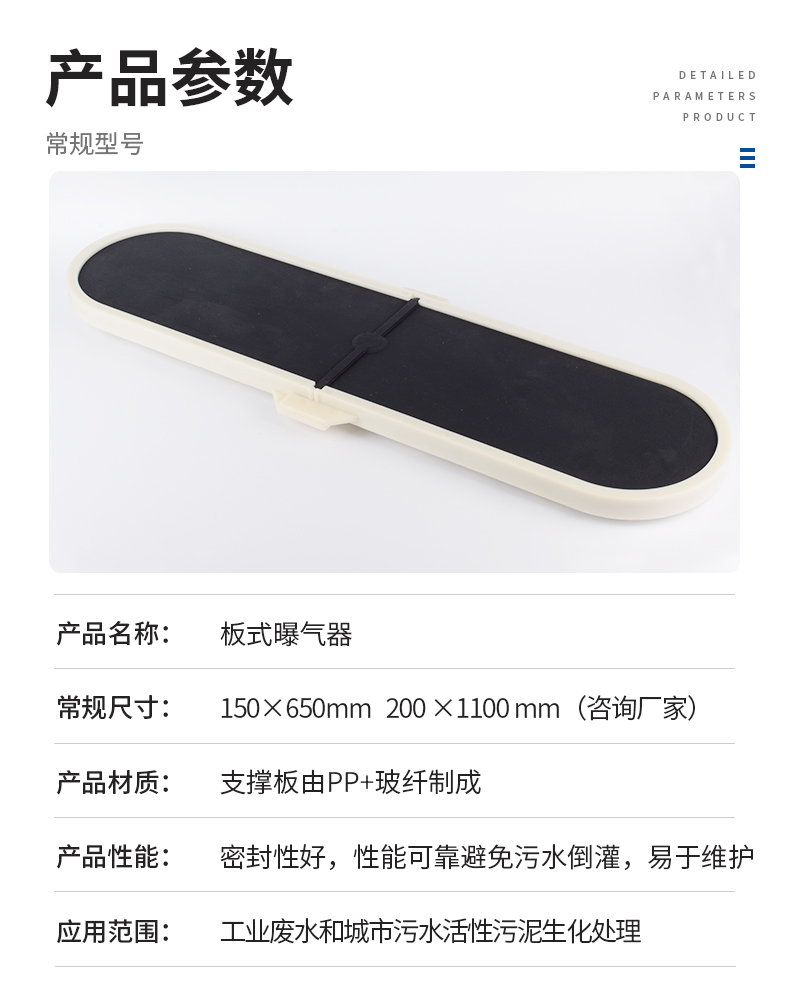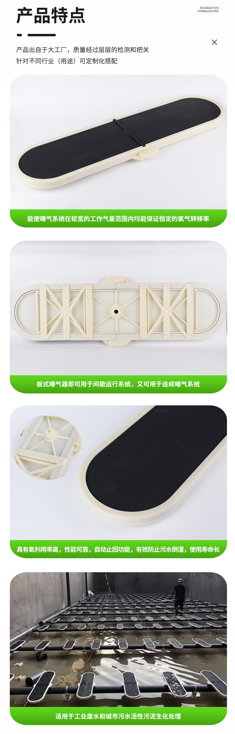 板式曝氣器設(shè)計(jì)結(jié)構(gòu)使曝氣器系統(tǒng)在較寬的工作氣量范圍內(nèi)保持低能耗、高效率;開(kāi)孔方式,在鼓風(fēng)機(jī)工作的過(guò)程中,曝氣器產(chǎn)生的氣泡均勻,達(dá)到很好的蓮花效應(yīng);該曝氣即可用于間歇運(yùn)行系統(tǒng),又可用于連續(xù)曝氣系統(tǒng),具有氧利用率高,性能可靠,曝氣器具有自動(dòng)止回功能,有效防止污水倒灌,使用壽命長(zhǎng)等特點(diǎn)。