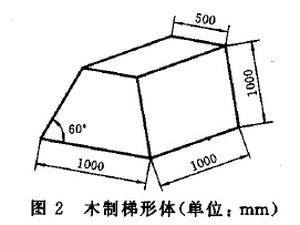 將單組斜管按其在沉淀池內的放置方式于水平地面上,用木制梯形體的腰面(見圖2)支撐斜管的傾斜面。在單組斜管的上管口平面上平放一塊木板,木板長1000mm,寬500mm,厚40mm,木板兩面平整。在木板上均勻施加重物,重物和木板質量之和為70kg。承荷載10min后,卸去荷載,用目測方法檢查脫焊、開裂或脫膠情況。